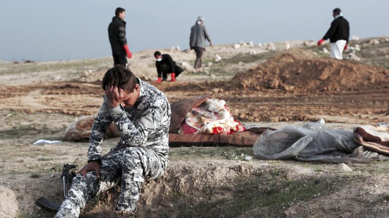 انتشلت مديرية الدفاع المدني في العراق 143 جثة من مقبرة جماعية في مدينة الموصل بمحافظة نينوى، التي سيطر عليها تنظيم "داعش" الإرهابي قبل تحريرها من قبضته.