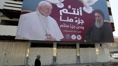 البابا فرنسيس يزور المرجع الشيعي علي السيستاني في منزله بالنجف جنوب العراق