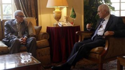وقال العربي إنه تشاور خلال اليومين الماضيين حول إصدار قرار يتفق مع الفصل السابع من ميثاق الأمم المتحدة مع الأمين العام للمنظمة الدولية بان جي مون والإبراهيمي.