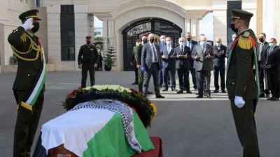 بمشاركة الرئيس محمود عباس، شيع جثمان أمين سر اللجنة التنفيذية لمنظمة التحرير صائب عريقات، ظهر اليوم الأربعاء، من مقر الرئاسة بمدينة رام الله.