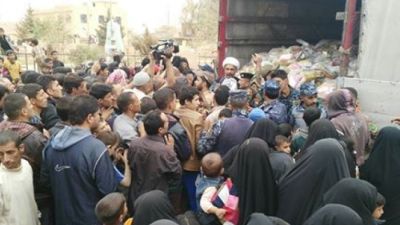 الفوضى تعم أحياء الموصل لدى توزيع المساعدات الإنسانية!