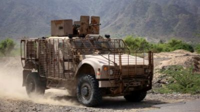 آلية مدرعة للقوات الموالية للرئيس اليمني عبد ربه منصور صالح في تعز خلال معارك مع الحوثيين