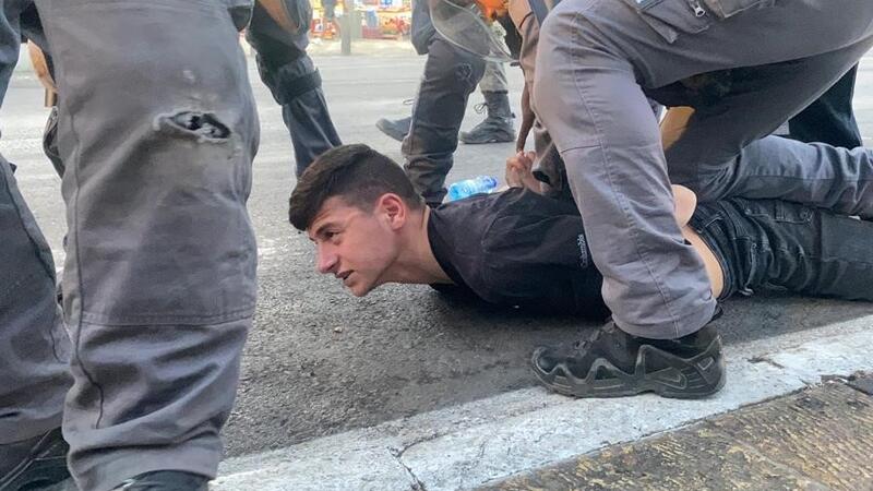 لحظة الاعتداء الوحشي على الشبان أثناء تأديتهم صلاة المغرب بباب العامود مساء اليوم pic.twitter.com/UxRCkZsQeT