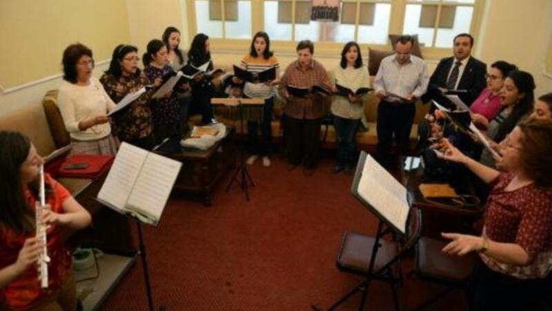 وفي إطار الاستعدادات لهذا القداس، تقوم جوقة بتدريبات أخيرة في قاعة ملاصقة لكنيسة القديس يوسف التابعة لرهبنة الفرنسيسكان في وسط القاهرة.