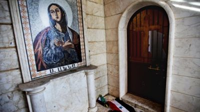 وبث التلفزيون السوري صورا للقداديس التي اقيمت في العاصمة بمناسبة عيد الفصح، حضر بعضها عدد قليل من المصلين.