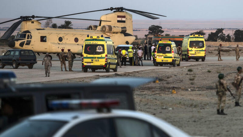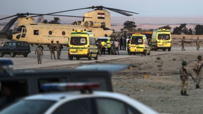 وبينما كان المحققون الروس يتفقدون الموقع ببطء كانت طائرات هليكوبتر عسكرية مصرية تحلق في السماء وتمشط المنطقة الأوسع التي ينتشر بها حطام الطائرة أو الجثث التي لم يعثر عليها بعد.