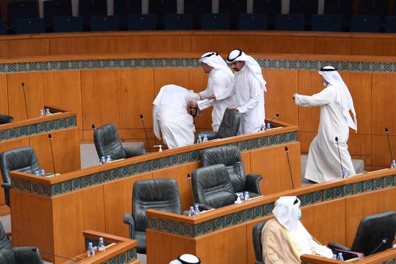 ورفع رئيس مجلس الأمة مرزوق الغانم الجلسة لمدة ربع ساعة على خلفية الاشتباك بين النواب.