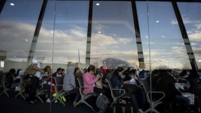 عاملات فيليبينيات في مطار مانيلا الدولي بعد عودتهن من الكويت
