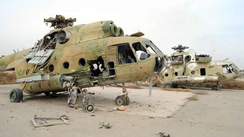 وأظهر أول فيديو من القاعدة بثته وكالة Ruptly، الدبابات والطائرات الهليكوبتر المصابة بأضرار بالغة في القاعدة الجوية، علاوة على المباني المدمرة.