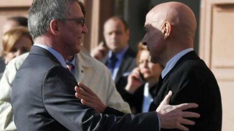 وزير الداخلية الايطالي ماركو مينيتي (يمين) مستقبلا نظيره الالماني توماس دي ميزيير في روما