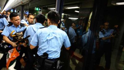 وأقدَم متظاهرون يرتدون ملابس باللون الأسود الذي يرمز إلى حراكهم، صباح الإثنين على استهداف شبكة المترو الحيويّة في هونغ كونغ، وذلك بإغلاقهم أبواب القطارات في بعض المحطّات بغية منعها من الانطلاق.