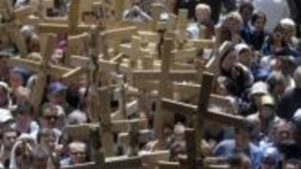 قام آلاف الحجاج المسيحيين القادمين من مختلف انحاء العالم بالسير على درب الآلام في شوارع القدس القديمة لاحياء يوم الجمعة العظيمة قبل عيد الفصح.