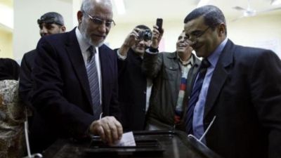 مرشد الاخوان المسلمين محمد بديع يدلي بصوته