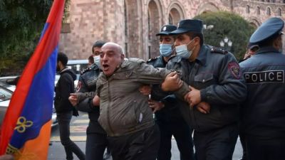 وقال نائب من حزب "أرمينيا المزدهرة" أرمان أبوفيان عبر مكبّر للصوت "لا يمكنكم أن تعتقلوا كل البلد"، في وقت كان الحشد يهتف بشعارات ضد رئيس الوزراء نيكول باشينيان المتهم بالاستسلام.