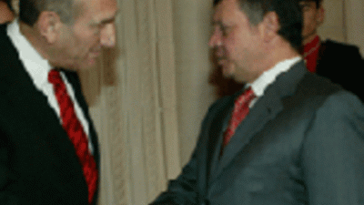 وقالت وكالة الانباء الاردنية (بترا) ان الملك عبدالله شدد لدى لقائه نائب رئيس الوزراء ووزير الصناعة والتجارة والعمل الاسرائيلي ايهود اولمرت على ضرورة ان يكون الانسحاب الاسرائيلي من غزة جزءا من خارطة الطريق ومقدمة لانسحاب اسرائيلي كامل من الاراضي الفلسطينية.