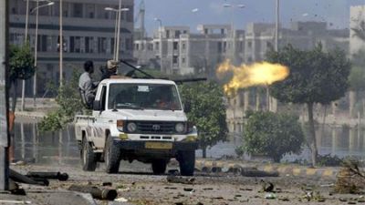 ورد الموالون للقذافي في باديء الامر على النيران بشكل محدود للغاية. لكن مقاتلي القوات الحكومية وقعوا في كمين. وعندما تعرض مقاتلو المجلس الوطني الانتقالي للقذائف الصاروخية ونيران الاسلحة الصغيرة تراجعوا سريعا للاحتماء من القصف بينما كان أحدهم يداوي جرحا في يده.
