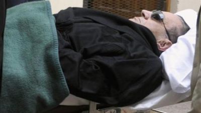 الرئيس المصري السابق حسني مبارك لدى وصوله للمحكمة في القاهرة