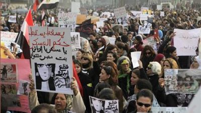 وشاركت أكثر من ألف امرأة يوم الأربعاء في مسيرة في مدينة الاسكندرية الساحلية رددن خلالها هتافات تقول "اللي يدنس شرفه وعرضه عمره ما يقدر يحمي أرضه" و"ارفعي راسك ارفعي راسك انتي أحسن م اللي داسك" و"قالوا حرية قالوا عدالة البسوا الاسود ع الرجالة" في اشارة الى حزب الحرية والعدالة الذراع السياسية لجماعة الاخوان المسلمين التي تبدي اهتماما بانتخابات مجلس الشعب الجارية حاليا أكثر مما تهتم بالانتهاكات ضد المحتجين.