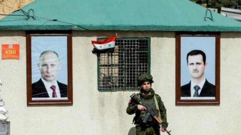 وعند نقطة للجيش، علقت على أحد الجدران صورة للرئيس الروسي فلاديمير بوتين الى جانب صورة الرئيس السوري بشار الأسد.