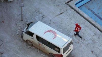 قال الهلال الأحمر العربي السوري على حسابه على تويتر إن أربعة متطوعين أصيبوا وأحدهم جروحه خطيرة بنيران قذائف لدى توزيعهم المساعدات في حلب يوم الأربعاء.
