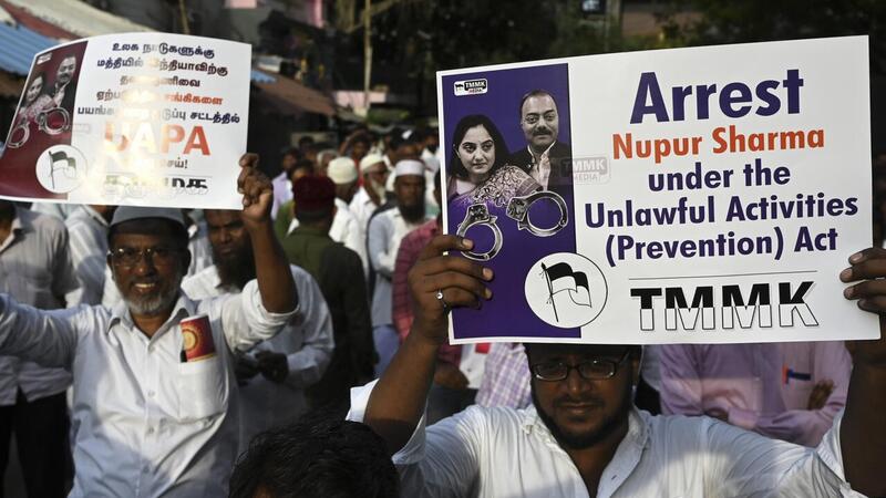 وشهدت المدن في جميع أنحاء الهند مظاهرات كبيرة يوم الجمعة، حيث أحرقت بعض الحشود دمى لنوبور شارما المتحدثة باسم حزب رئيس الوزراء ناريندرا مودي التي أثارت تعليقاتها الضجة.