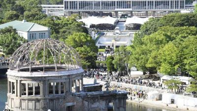 ووقف الآلاف من المشاركين في المراسم التي أقيمت بالقرب من موقع سقوط القنبلة) دقيقة صمت تخليدا لذكرى الضحايا في الساعة 08:15 من صباح الأحد (23:15 من مساء السبت بتوقيت غرينتش)، نفس الوقت الذي شهد قبل 72 عاما إسقاط طائرة أمريكية من طراز “بي29-” أول قنبلة ذرية على المدينة في الأيام الأخيرة من الحرب العالمية الثانية.