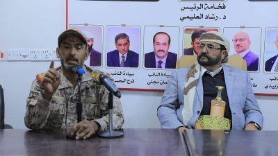 عضو المجلس الرئاسي سلطان العرادة، ورئيس هيئة الأركان اليمني يسعسان لاحتواء الأزمة
