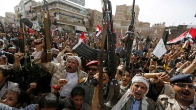 خرج عشرات الآلاف من أنصار الحوثيين الاثنين، الى شوارع العاصمة اليمنية صنعاء في الذكرى الثالثة لبدء التدخل العسكري بقيادة الرياض، بعد ساعات من إعلان السعودية اعتراض سبعة صواريخ بالستية أطلقها المتمردون وأدت الى سقوط قتيل واحد.