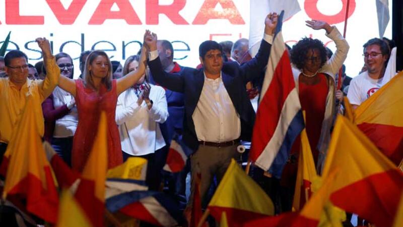 انتخب مرشح حزب يسار الوسط الحاكم في كوستاريكا كارلوس ألفارادو رئيسا للبلاد بعد فوزه في الدورة الثانية من الانتخابات الرئاسية التي جرت الأحد في هذا البلد الذي يشهد انقساما حول زواج المثليين والديانة.