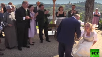 وزيرة خارجية النمسا ترقص مع بوتين خلال حفل زفافها