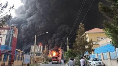 وحذرت السلطات من أن النيران قد تتسبب في تسرب ملوثات خطيرة إلى الهواء، مضيفة أنه تم استدعاء الحرس الثوري للمساعدة.