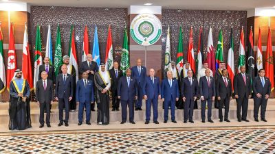في كلمته اكد الأمين العام لجامعة الدول العربية أحمد أبو الغيط إن : "بعض الدول العربية تعيش أوضاعا تهدد وجودها" من خلال وجود "الإرهاب والمليشيات والجماعات المسلحة وبعض الأطراف تحرض وتمارس تدخلات غير حميدة في الدول العربية".