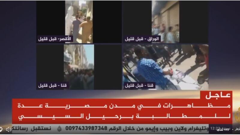 وتداول نشطاء مصريون لقطات لتظاهرة خرجت في محافظة قنا بصعيد مصر، ردد فيها المتظاهرون هتافات تطالب برحيل السيسي.