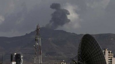 وقالت مصادر محلية لوكالة الأنباء الألمانية إن “غارات جوية هي الأعنف منذ بدء عمليات التحالف في اليمن، استهدفت معسكر النقل البري في منطقة سواد حنش، ومعسكر الصيانة”.