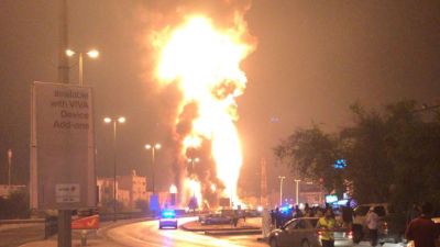 فيديو- انفجار يشعل حريقا ضخما بخط لأنابيب النفط في البحرين