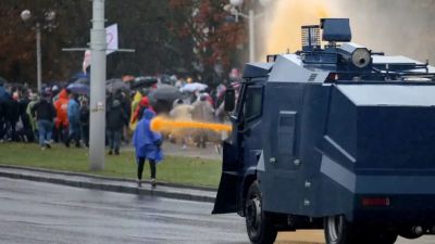 وقمعت الشرطة الأحد بعنف للمرة الأولى التظاهرة الكبيرة الأسبوعية في مينسك، مستخدمة خراطيم المياه والقنابل الصوتية ضد الحشود في أعنف تدخل لها منذ أسابيع.