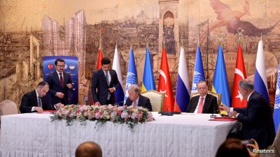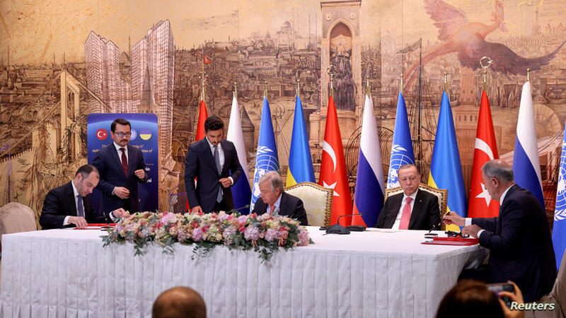 وقعت أوكرانيا وروسيا، الجمعة، في إسطنبول اتفاقين منفصلين مع تركيا والأمم المتحدة بهدف إفساح المجال أمام نقل الحبوب العالقة في الموانئ الأوكرانية في البحر الأسود، على خلفية الحرب الروسية، التي بدأت منذ أكثر من خمسة أشهر.