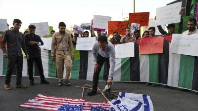 وردد الحشد هتافات "الموت لأمريكا" و"الموت لإسرائيل"، كما هو معتاد في التظاهرات المناهضة لأمريكا في إيران.