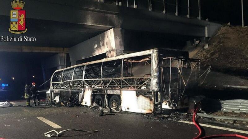 قالت الشرطة الإيطالية السبت إن 16 شخصا على الأقل لقوا حتفهم وأصيب نحو 40 بعد اشتعال النيران في حافلة تقل طلابا مجريين على طريق سريع في شمال إيطاليا.
