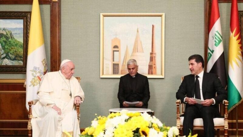 تعهد رئيس إقليم كردستان العراق، نيجيرفان بارزاني، اليوم الأحد، بالإلتزام بالحرية الدينية والسلام في الإقليم، بعد لقائه بابا الفاتيكان في أربيل.