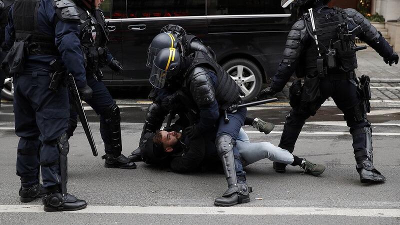 اشتدت حدة الاشتباكات بيت محتجي السترات الصفراء والشرطة الفرنسية في باريس وسط إجراءات أمنية مشددة شملت نشر أكثر من 60 ألف عنصر أمن لمواجهة ما وصف بـ"السبت الأسود" في فرنسا.