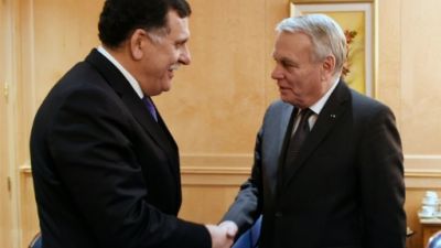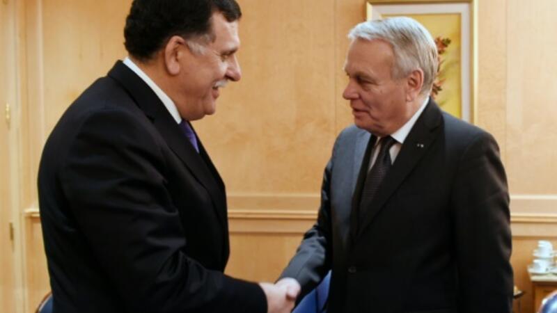 أعلن وزير الخارجية الفرنسي جان مارك ايرولت الجمعة في لقاء بتونس مع فائز السراج رئيس حكومة الوفاق الوطني الليبية دعم باريس للسراج الذي اشاد بشجاعته في اداء مهمته "المحفوفة بالمخاطر".