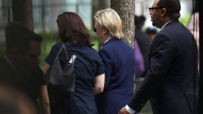 وذكر تلفزيون فوكس نيوز نقلا عن مصادر في الشرطة ان "الاعياء" بدا على كلينتون اثناء ركوبها حافلة صغيرة لمغادرة مكان المراسم.
