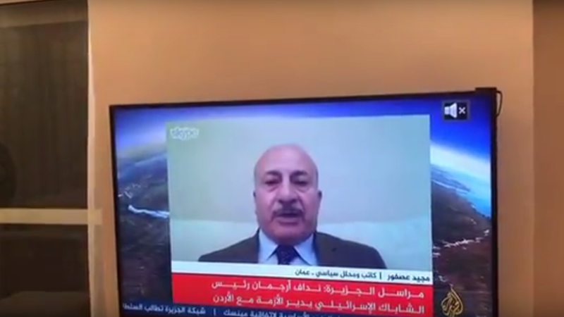 تداول نشطاء على مواقع التواصل الاجتماعي، اليوم الأربعاء، فيديو يظهر الكاتب والمحلل السياسي الأردني مجيد عصفور وهو يتحدث لقناة الجزيرة القطرية بينما لم يكن مرتديا ثيابه بالكامل.