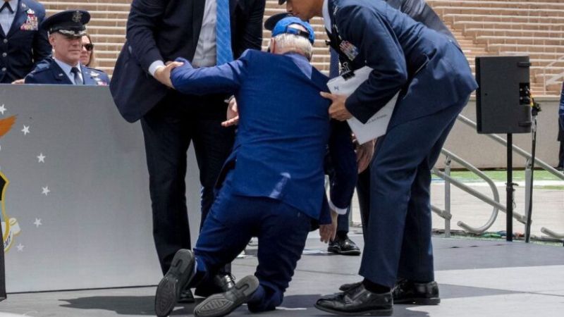وغالبا ما تظهر علامات الشيخوخة المتقدمة جدا على الرئيس بايدن تم رصده وقد نام فياحدى الجلسات بالاضافة الى نسانه اسماء وتواريخ واحداث ويرتبها في غير مكانها الصحيح الى جانب سقوطه المتكرر