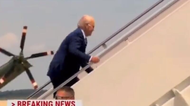 بايدن يتعثر مجددا على سلم الطائرة (فيديو)