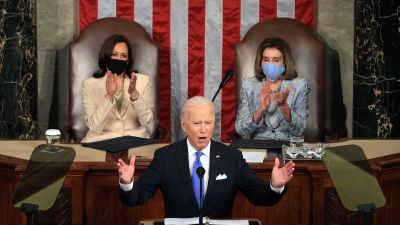 واستغل بايدن جائحة فيروس كورونا لطرح أولوياته في وقت يشهد استقطابا سياسيا، فأبلغ الجلسة المشتركة لمجلسي الكونغرس النواب والشيوخ وملايين الأمريكيين الذين يتابعونه على شاشات التلفزيون بأن “أمريكا مستعدة للإقلاع”.