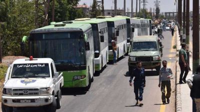 وذكر مراسل الوكالة أن مئات المقاتلين وعدد من أفراد عائلاتهم استقلوا 15 حافلة. فيما أورد مدير المرصد رامي عبد الرحمن أن “الحافلات تحركت من نقطة التجمع نحو أطراف المدينة تمهيدا لتفتيشها”