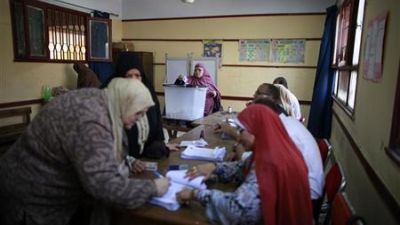 ناخبات مصريات أثناء الادلاء بأصواتهن في مركز اقتراع بالقاهرة