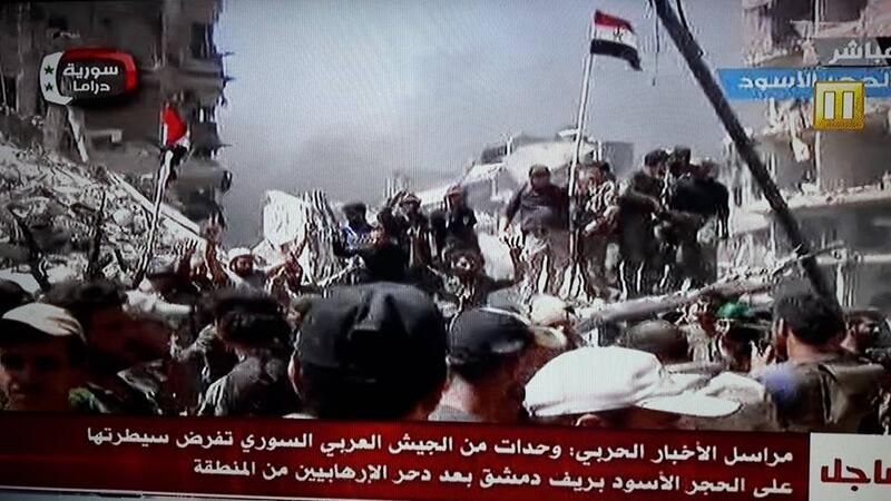 يعود اليوم نظام الأسد ليعلن عن سيطرته على العاصمة دمشق، ومحيطها بشكل كامل، حيث أعلنت القيادة العسكرية في جيشه، اليوم الاثنين، أن العمليات العسكرية في دمشق وريفها انتهت، وذلك بعد خروج عناصر تنظيم "داعش" إلى البادية السورية ضمن الاتفاق المبرم بينهما وفق تقرير لموقع بلدي نيوز الالكتروني